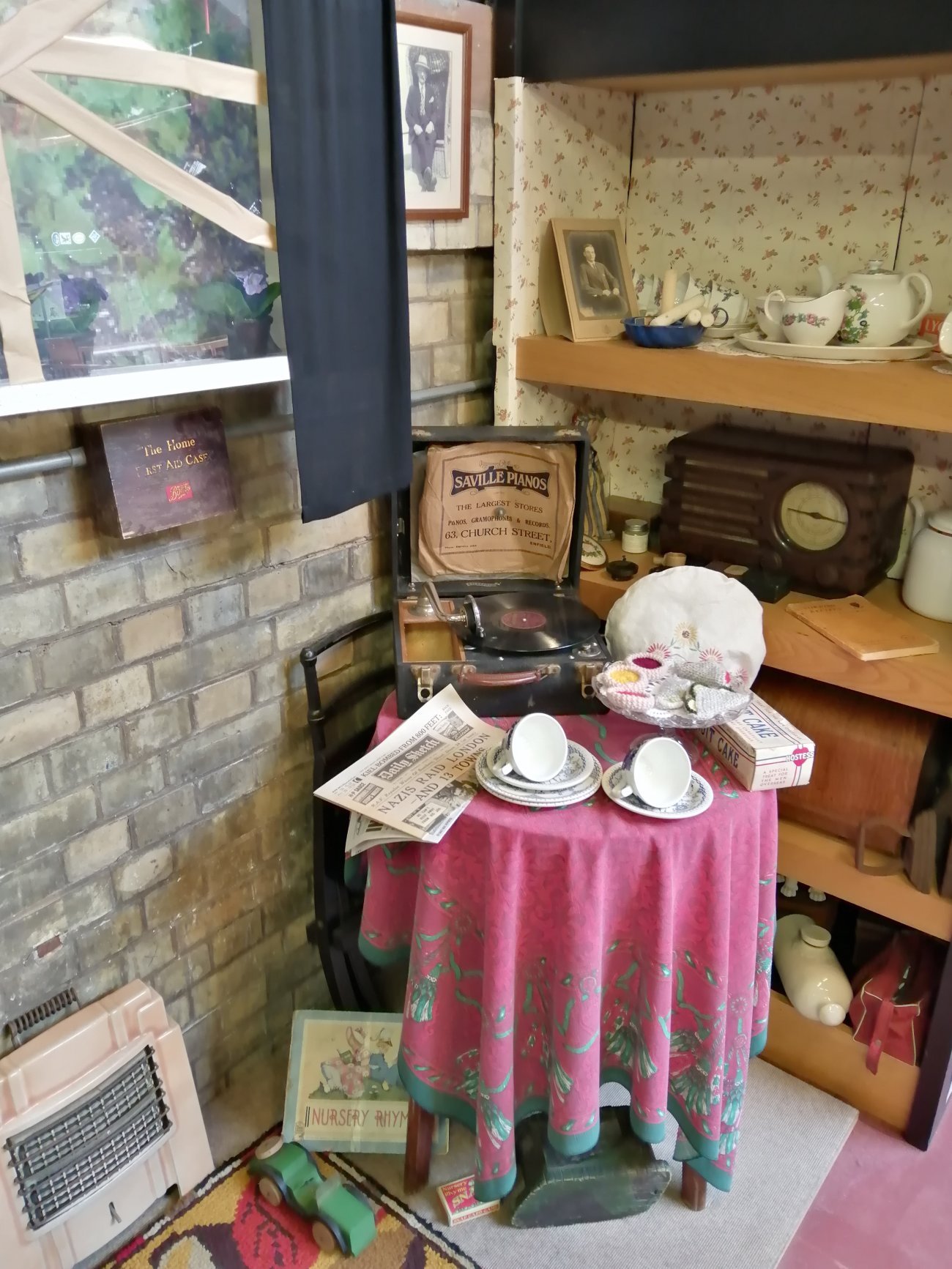 A detailed reconstruction of a WW2 living room and Anderson shelter.