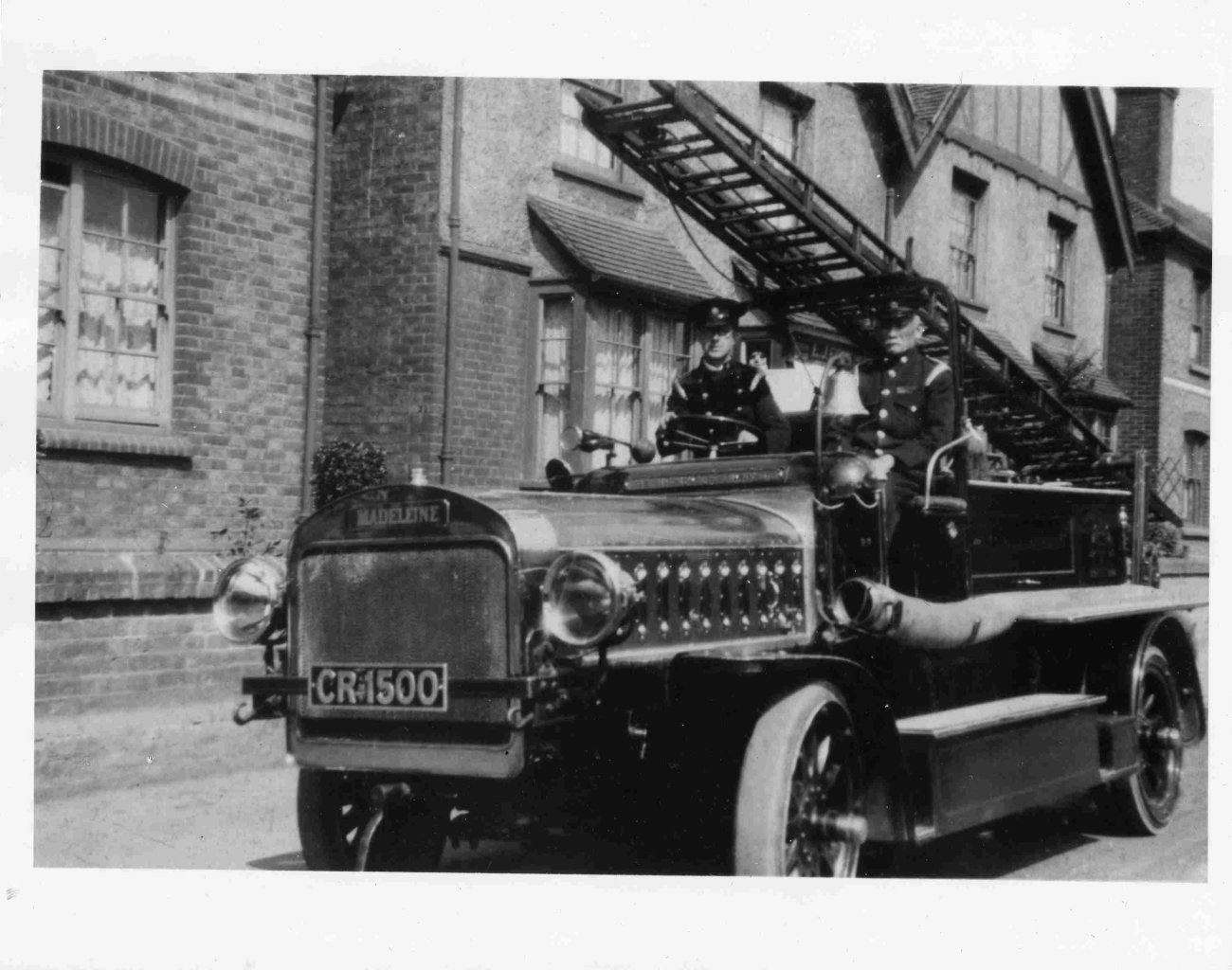 One of our prized possessions is ‘Madeleine’, the 1912 John Morris-Belsize fire engine. Built in Manchester and Salford for the City of Southampton, she is named after the Mayoress of the city. In service there until 1926 she was part exchanged against a new fire engine from Dennis Brothers of Guildford who then sold her onto Billings Printers of Guildford to be used as their works fire engine. In 1932 Dennis’s converted her from solid tyres and wooden wheels to pneumatic tyres in order to comply with newly introduced Government regulations.